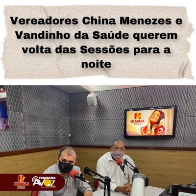 Os vereadores China Menezes (PP) e Vandinho da Saúde (Patriotas) querem a volta das sessões ordinárias da Câmara de Vereadores, para o período noturno.