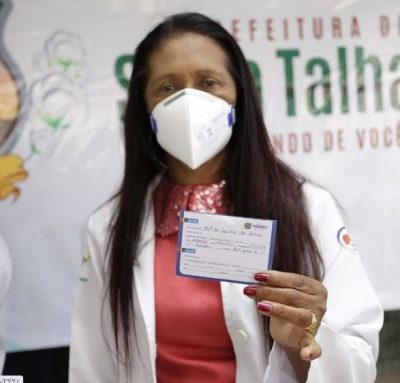 A técnica de enfermagem Maria do Carmo foi a primeira a receber a dose no começo da tarde, no lançamento da campanha de vacinação com a presença da Prefeita Márcia Conrado e da Secretaria de Saúde Lisbete Souza. A técnica em Enfermagem, de 62 anos, trabalha há 30 anos na área como vacinadora no Programa Municipal Saúde da Família, unidade do bairro Alto do Bom Jesus. “Ser escolhida como primeira serratalhadense vacinada é muito emocionante! Ainda mais porque vivo diariamente conscientizando as pessoas da importância que a vacinação tem. Eu amo muito a minha profissão e fico muito feliz em me tornar exemplo nessa campanha tão esperada!”, comentou.