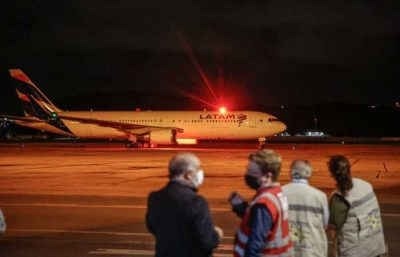 O avião que trouxe as primeiras doses da Coronavac a serem aplicadas em Pernambuco e outros estados do Nordeste aterrissou no Aeroporto Internacional do Recife por volta das 19h30 desta segunda-feira (18). As vacinas foram trazidas por um voo de passageiros da Latam, acondicionadas em compartimentos climatizados no bagageiros. Os imunizantes destinados a Pernambuco – 270 mil doses nesta primeira remessa – seguem do terminal aéreo para uma central de distribuição na Zona Norte do Recife, para então seram levados aos municípios.