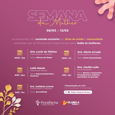 SEMANA DA MULHER: A Vilabela FM terá programação especial em parceria com a Finnofarma