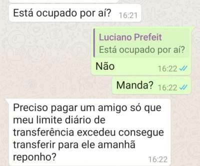 O ex-prefeito de Serra Talhada Luciano Duque teve o seu número de telefone clonado por estelionatários. Os contatos do ex-chefe do Executivo de Serra Talhada receberam mensagens dos criminosos, que solicitaram transferência de dinheiro, em contas bancárias.