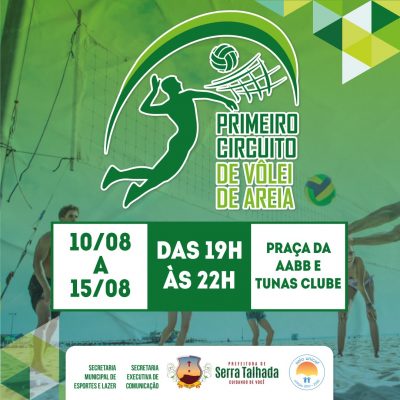 A Prefeitura de Serra Talhada, por meio da Secretaria Municipal de Esportes e Lazer, realiza de 10 a 15 de agosto o I Circuito de Vôlei de Areia, das 19h às 22h, na quadra esportiva da Praça da AABB e no Tunas Clube.