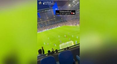 Durante o jogo desta quarta-feira, a pernambucana postou nos stories do seu perfil no Instagram algumas imagens feitas do que parece ser um dos camarotes do Etihad Stadium. Ela mostrou imagens do campo, registrou até o momento do gol marcado por Jesus na partida e escreveu “isso aí, meu garoto”, marcando o namorado na postagem.