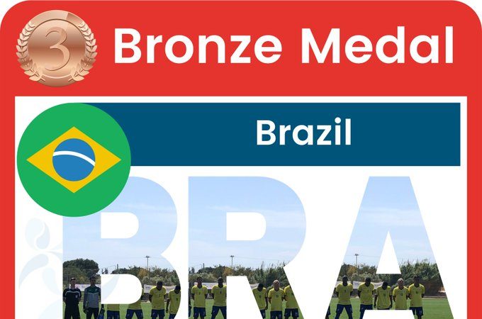 oi a quinta vez que o Brasil finalizou o Mundial de futebol PC (que era conhecido como futebol de sete paralímpico) em terceiro lugar. Além de 2019, a seleção também foi bronze em 1998, 2001 e 2015. As melhores campanhas foram em 2003 e 2013, quando os brasileiros foram à final, mas ficaram com o vice-campeonato.
