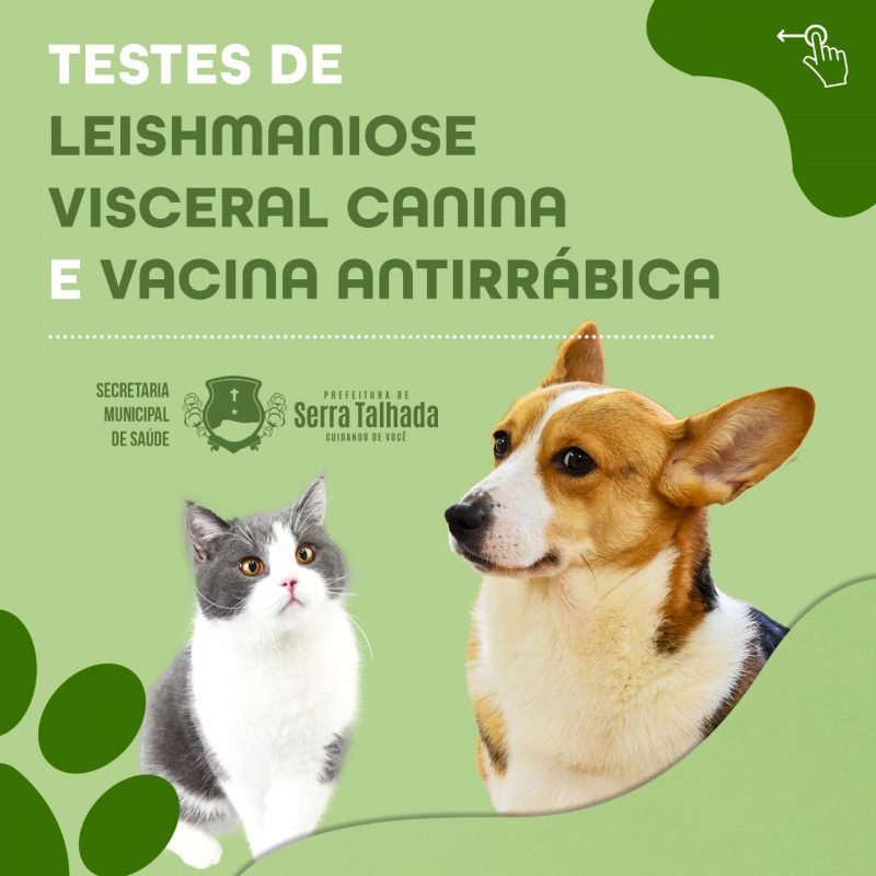 Serão disponibilizados testes de leishmaniose visceral canina e vacinação antirrábica para cães e gatos.