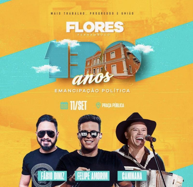 A Prefeitura de Flores divulgou nesta sexta (05), as atrações da festa de 130 anos de emancipação política.
