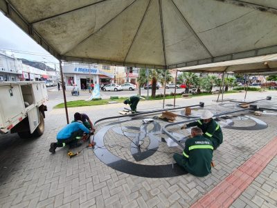 Na Praça Barão do Pajeú estão sendo instalados 04 novos postes com
