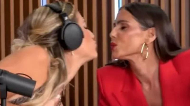 Giovanna Ewbank disse que estava lisonjeada e a atriz declarou: “Não é por nada não, mas dizem que eu beijo bem”. Em seguida, as duas dão um selinho.