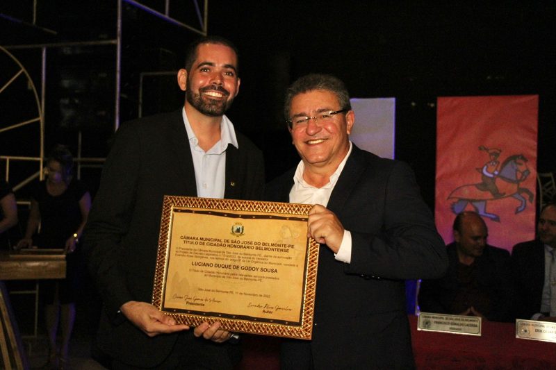 O ex-prefeito de Serra Talhada e deputado estadual eleito no último dia 02 de outubro, Luciano Duque, recebeu da Câmara Municipal de São José do Belmonte o Título de Cidadão Honorário do Município.