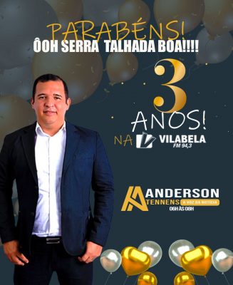 O programa “A voz da Notícia” comemora 03 anos de audiência e credibilidade. A equipe da rádio Vilabela FM de Serra Talhada parabeniza o comunicador, Anderson Tennens, pela dedicação e parceria, trazendo todos os dias das 06h às 08h informações com responsabilidade à população.
