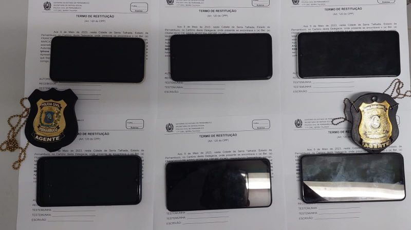 Polícia Civil de Pernambuco, através do Setor de Roubos e Furtos da Delegacia da 177ª Circunscrição de Serra Talhada e da 21ª DESEC, no dia de hoje (09/05/2023), efetuou a restituição de 06 (seis) aparelhos celulares aos seus respectivos proprietários, os quais eram produtos de crime contra o patrimônio e foram recuperados mediante investigações desenvolvidas pelo efetivo policial.