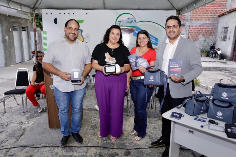 A solenidade de lançamento do projeto TELE-HA aconteceu na Unidade de Saúde da Família do Alto da Conceição, com a presença do vice-prefeito Márcio Oliveira; da secretária de Saúde, Lisbeth Lima; da secretária-executiva de Saúde, Tamires Brandão; do médico cardiologista responsável pelo desenvolvimento do projeto, Elder Gil; e de profissionais da Atenção Básica.