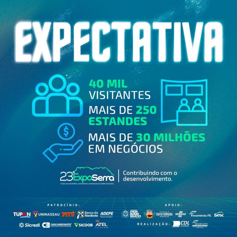 A 23ª ExpoSerra, que acontece de 19 a 22 de julho, no Armazém Social do Sesc Serra Talhada, espera receber cerca de 40 mil visitantes ao longo dos quatro dias de evento.