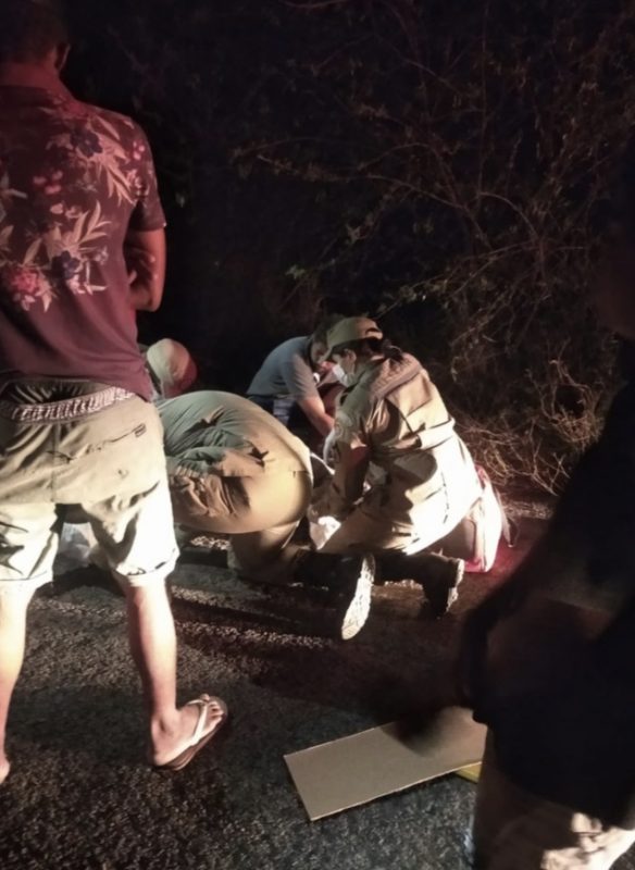 Ao chegarem ao local, os bombeiros encontraram um cenário de abalroamento entre duas motocicletas. O condutor de uma das motocicletas, um homem de 25 anos, estava em pé e consciente, apresentando escoriações nos membros superiores e inferiores. A segunda vítima, uma passageira da outra motocicleta, uma mulher de 18 anos, foi encontrada em posição decúbito dorsal, também consciente, mas com escoriações e fraturas nos membros superiores e inferiores.