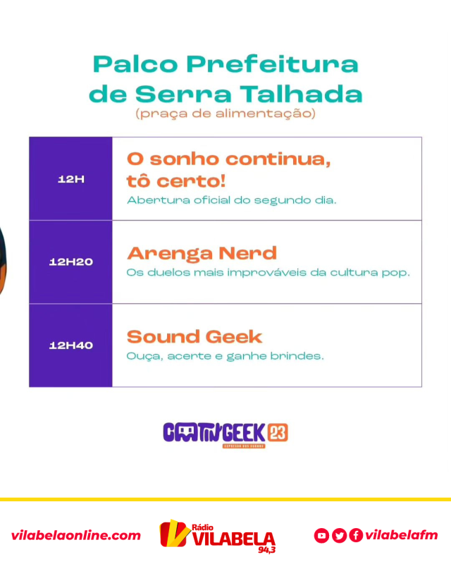 Com o sucesso do primeiro dia, as expectativas para o último dia do evento, que acontece neste domingo (19), estão ainda mais altas. Não perca a chance de mergulhar no universo geek e aproveitar as últimas atrações do Caatingeek no Shopping Serra Talhada.