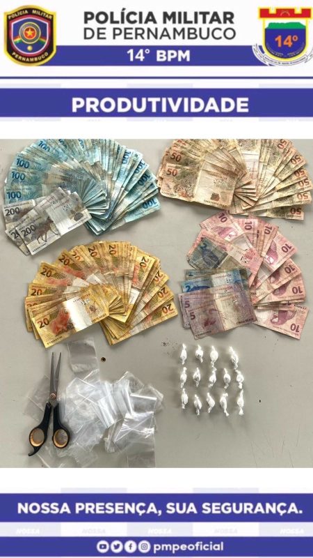Policiais Militares do 14°BPM receberam denuncia de tráfico na zona rural de Serra Talhada nessa quinta, 22. De imediato fizeram deslocamento e ao abordar o suspeito, ele informou que possuía uma quantidade de drogas dentro do tênis, onde foram encontradas 10 unidades de substancia análoga a cocaína.