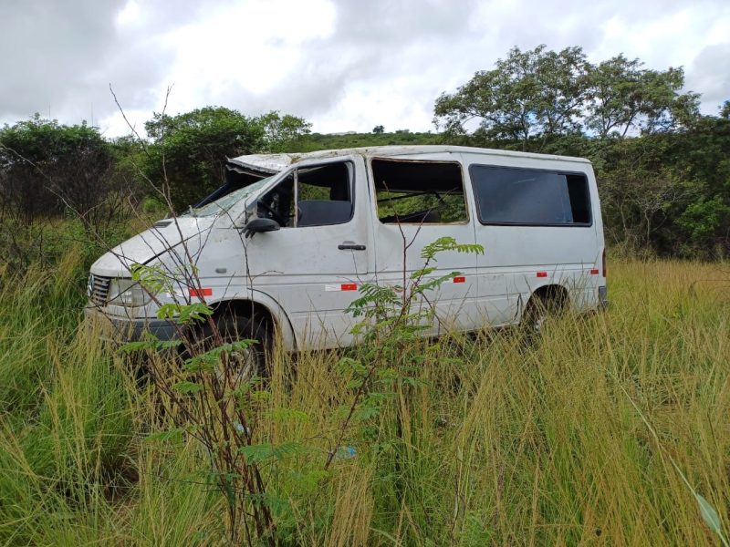 A suspeita é de que o motorista de uma Van tentou fazer uma ultrapassagem, mas viu um carro no sentido contrário, e ao retornar para a faixa de origem, saiu da pista e capotou.