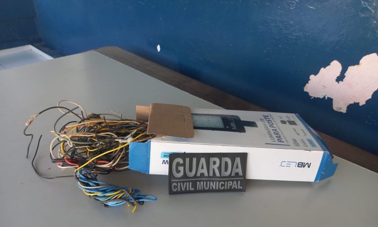 Na tarde deste domingo (21), por volta das 15h53, as equipes da patrulha urbana da Guarda Municipal foram acionadas para atender a uma ocorrência de furto na Secretaria de Iluminação Pública. Ao chegarem ao local, os guardas testemunharam o suspeito tentando fugir com vários pedaços de fios dentro de uma caixa.