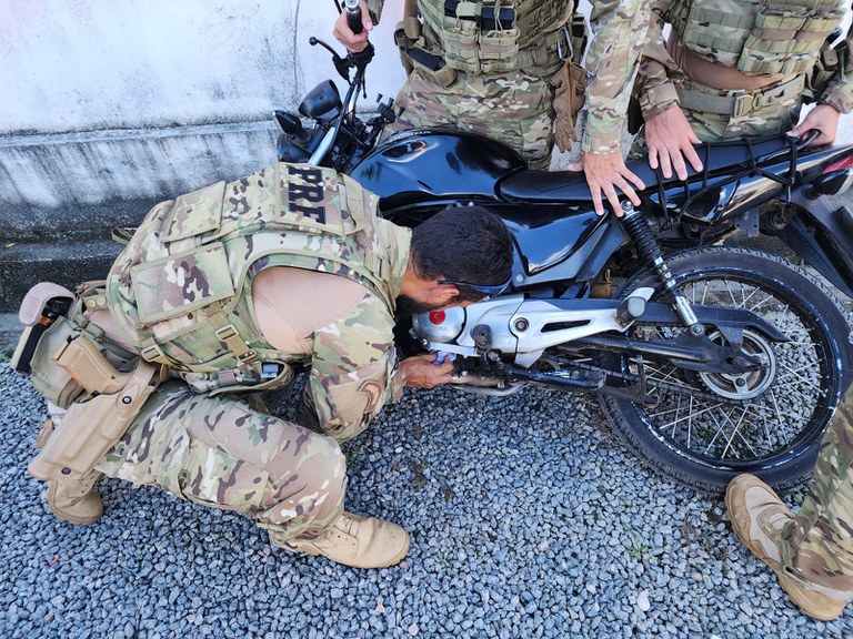 Em Jaboatão dos Guararapes, a equipe realizava uma fiscalização na BR-101 quando deu ordem de parada à uma motocicleta. Durante a abordagem, o condutor afirmou ser inabilitado e apresentou um licenciamento do ano de 2021. Os policiais tentaram conferir a placa da moto nos sistemas, mas não houve retorno, e então iniciaram uma investigação minuciosa, constatando a adulteração em elementos identificadores do veículo.