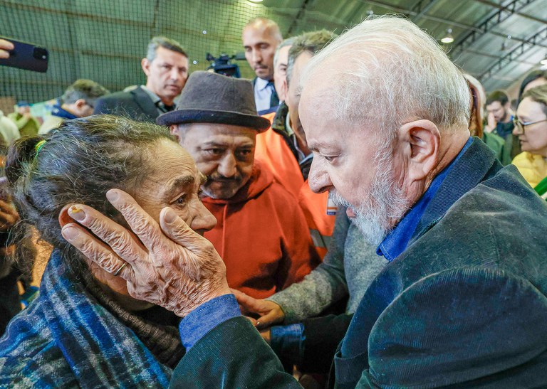 O presidente Luiz Inácio Lula da Silva participa na tarde desta quarta-feira (15/5) de reunião com representantes dos Três Poderes e autoridades do governo e de municípios do Rio Grande do Sul. O encontro ocorre após visita de Lula ao abrigo instalado na Unisinos, em São Leopoldo, e serve para marcar o anúncio de uma série de novas ações formuladas pelo Governo Federal para socorrer a população gaúcha vitimada pela tragédia climática que atinge o estado. A União prevê ainda uma série de medidas destinadas, não apenas ao estado e aos municípios, mas também a cada cidadão que perdeu casa e pertences.