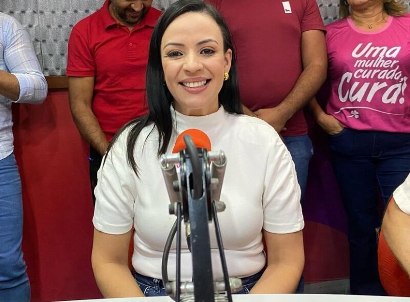 Na entrevista, a prefeita de Serra Talhada, que busca reeleição, esteve ao lado do pré-candidato à vice Faeca Melo, vereadores, pré-candidatos a vereador, entre outros.