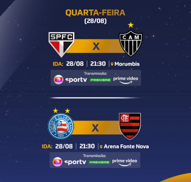 Em caso de empate na soma dos dois resultados, a vaga será decidida nos pênaltis, já que o gol fora de casa não é mais critério de desempate. Para os torcedores, os jogos podem ser acompanhados ao vivo pela Globo, Sportv, Premiere e Prime Video.