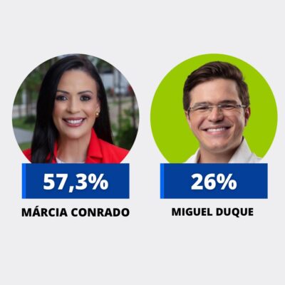 Faltando quatro dias para as eleições, a prefeita de Serra Talhada, Márcia Conrado (PT), aparece com 31 pontos de vantagem em relação ao seu principal adversário Miguel Duque (Podemos). Segundo levantamento do Instituto Opinião, em parceria com este blog, a petista aparece com 57,3% das intenções de voto ante 26% de Miguel. O Sargento Jucelio Souza (PL) pontua 1,5% e Luiz Pinto (Psol) 1,3%. Brancos e nulos somam 2% e indecisos representam 11,9%.