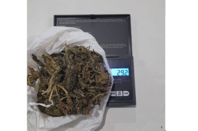 Ao perceber a atitude, a equipe policial realizou o acompanhamento e interceptou o suspeito. Durante a abordagem, foi encontrada em sua calça uma quantidade de 29,2g de uma substância análoga à maconha.