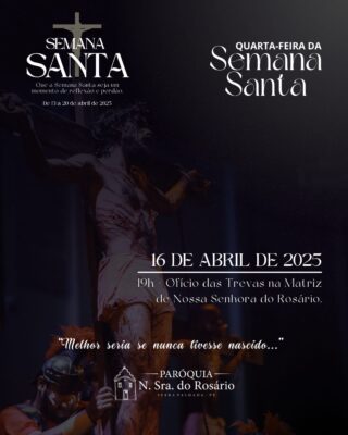 Nesta quarta-feira (17), a Paróquia de Nossa Senhora do Rosário convida a comunidade católica para participar do Ofício das Trevas, que será celebrado às 19h, na Igreja Matriz, localizada no bairro do Rosário.