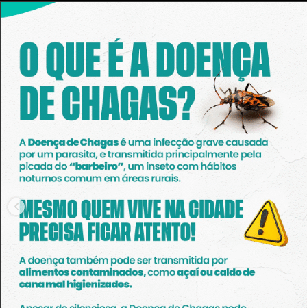 A iniciativa busca facilitar o diagnóstico precoce da doença, que é provocada pelo protozoário Trypanosoma cruzi, geralmente transmitido pelo inseto conhecido como “barbeiro”. Além disso, a infecção também pode ocorrer pelo consumo de alimentos contaminados, como açaí ou caldo de cana mal higienizados.