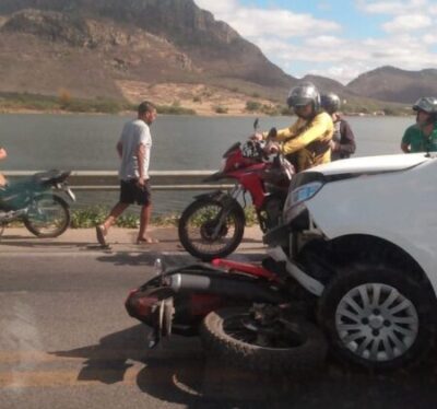 Colisão entre carro e moto deixa mulher ferida na BR-232, em Serra Talhada