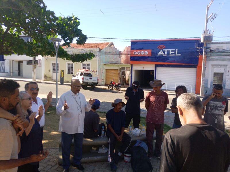 Dom Limacedo esteve na Praça Sérgio Magalhães, no Centro de Serra Talhada, onde realizou uma visita aos moradores em situação de rua. A ação incluiu momentos de diálogo, acolhimento e escuta, reforçando a mensagem de compaixão e proximidade defendida pela Igreja.