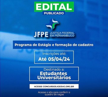 OportunidadePernambucoSerra TalhadaOPORTUNIDADE: JFPE LANÇA EDITAL PARA SELEÇÃO DE ESTÁGIO DIFERENTES ÁREAS DE NÍVEL SUPERIOR