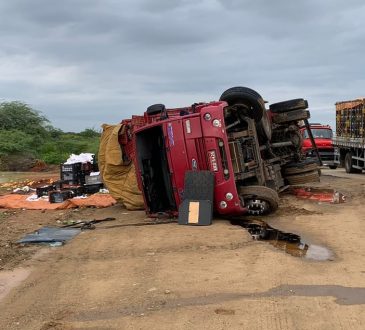 REGIONALCaminhão carregado de manga tomba na PE-360 em Floresta, PE; buraco continua causando acidentes