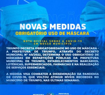 REGIONALTriunfo decreta volta da obrigatoriedade do uso de máscaras em ambientes públicos e comercias