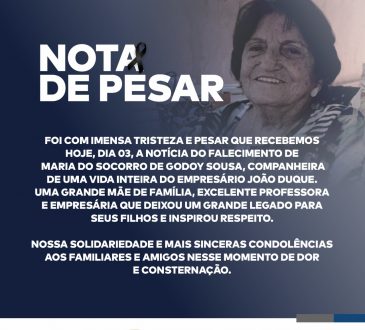Serra TalhadaEntidades empresariais de Serra Talhada emitem nota de pesar pelo falecimento de Dona Maria do Socorro de Godoy