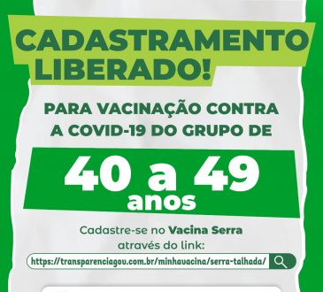 NotíciasSerra TalhadaPrefeitura de Serra Talhada libera cadastro de pessoas de 40 a 49 para vacina contra COVID-19