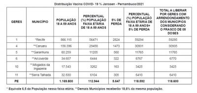 Para o Recife, as doses vão contemplar 6,5% da população de 18 a 59 anos. Já em Caruaru, Garanhuns, Arcoverde, Afogados da Ingazeira e Serra Talhada chegarão a 18,6% da faixa de idade de 18 a 59 anos.
